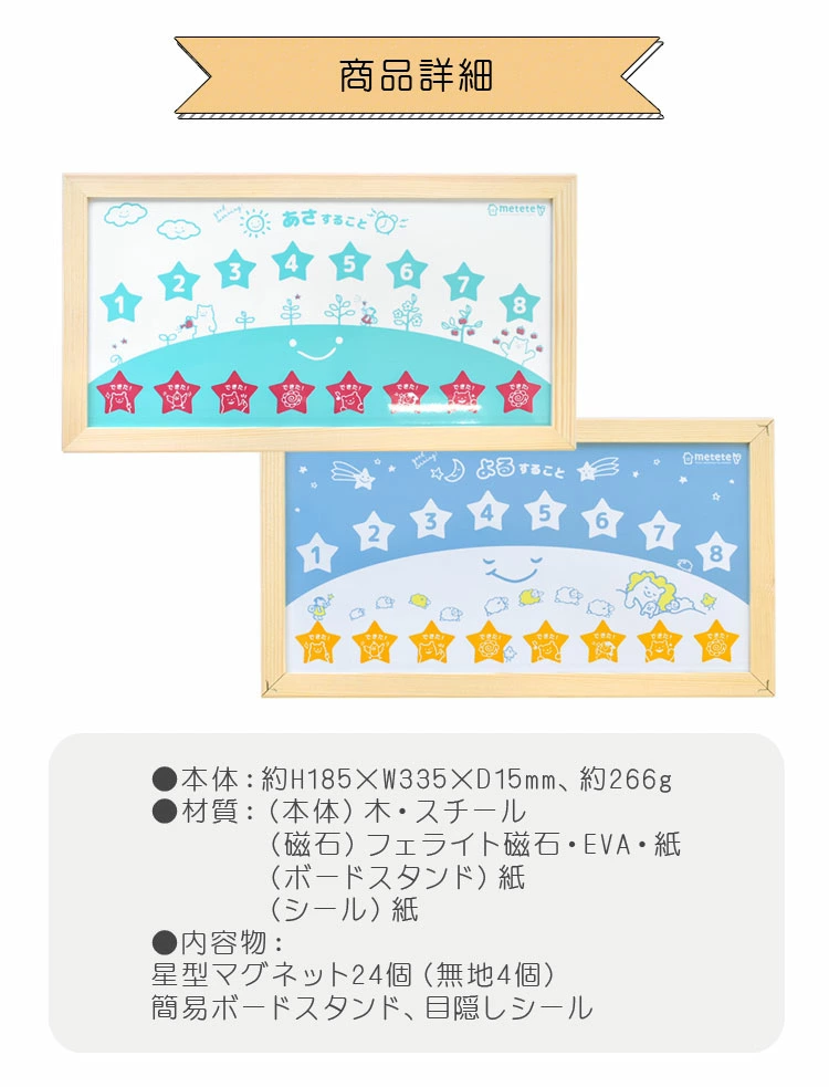 ■素材本体:木・スチール磁石:フェライト磁石・eva・紙ボードスタンド:紙シール:紙