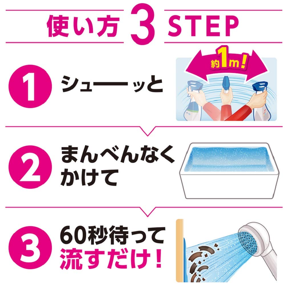 〇商品説明浴そうをこすらず洗えるだけでなく、銀イオン配合で除菌もピンク汚れ予防もこすらずにできる。●浴そう全体にシューーッとかけて60秒後に流すだけで、こすらずに汚れを落とせる。●シューッとかけて5分後に流すだけで、こすらずに除菌ができる。●ピンク汚れがつきやすいところに、シューーッとかけて60秒後に流すだけで、こすらずにピンク汚れの発生を予防できる。 ●たっぷり使える大容量