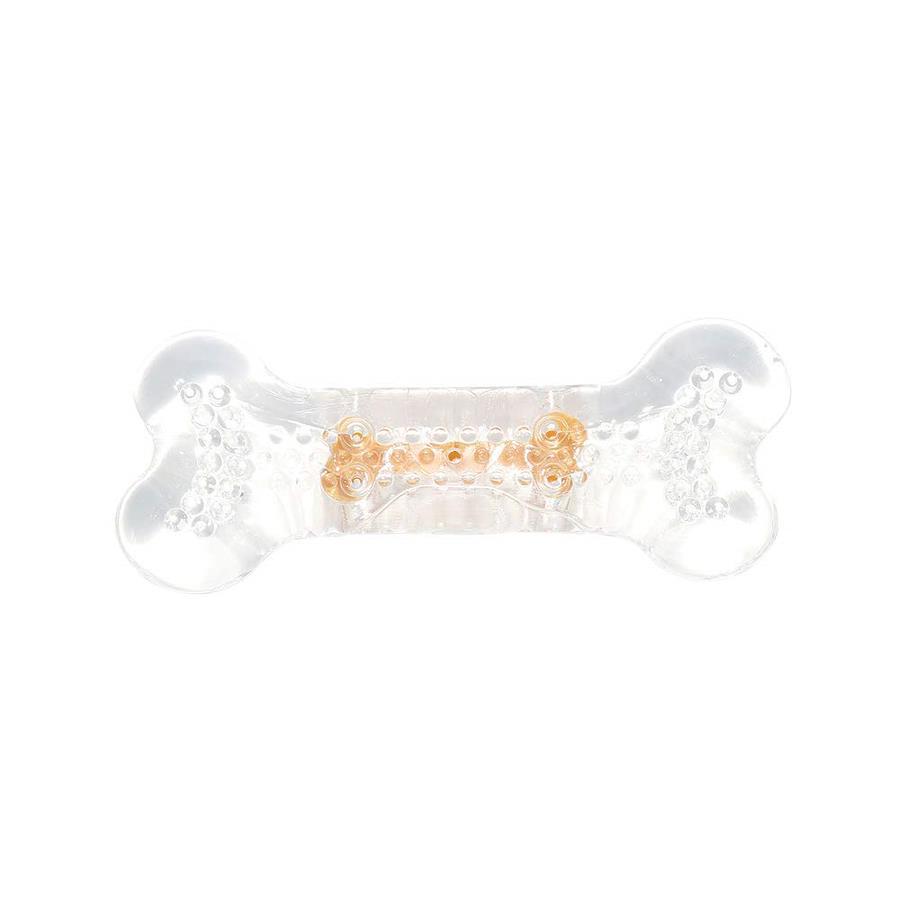 「ループ・デンタルボーン」は、おいしい香りが付いたゴムが中心部分に入っているので、ワンちゃんを飽きさせません。日頃のデンタルケアとともに、ワンちゃんの噛みたい本能を満たしてあげましょう!デンタルケアには歯磨きのように直接汚れを落とす方法と、歯磨きガムなどを使って唾液を分泌させることで口内環境を整える方法があります。「ループ・デンタルボーン」は飽きずに長く噛むことでしっかり唾液を分泌させると同時に、歯茎をマッサージできる構造・形状になっています。噛む力が弱いワンちゃんや硬いものが苦手になってきた高齢ワンちゃんにもおすすめです。小中型犬用・やわらかめ本製品はデンタルケア&ストレス解消を目的とした犬用おもちゃであり、食品ではありません。本来の用途以外には使用しないでください。 本製品は丈夫な素材を使用していますが、ワンちゃんの性格や遊び方等によってすぐに破損することがあります。 誤飲やいたずらを防ぐため飼い主様の目の届く場所で使用し、壊れかけた場合は直ちに使用を中止し新しいものに交換してください。飲み込んでも害のない素材を使用していますが、万一誤飲した時は獣医師に相談してください。 おもちゃを投げて遊ぶときは、周囲の安全を十分に確認してください。 幼児やペットの手の届かない場所に保管してください。