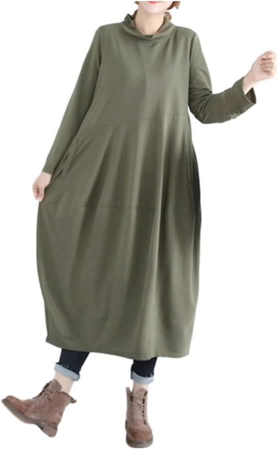 秋冬はもちろん、まだ肌寒い春先にも大活躍の、重ね着をする季節にも嬉しい、ゆったりとした身幅のコクーン型ロングワンピースになります。