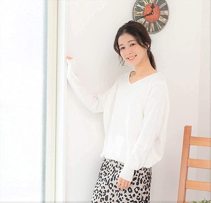 ・無地で程よく開いたVネックニットにはネックレスやブレスレットも映えます*きれいめ秋色カラーとちょっと長めのセミロング丈が、体型カバーしながら女性らしいスタイリングを1ランクUPし、秋冬コーデも簡単に。