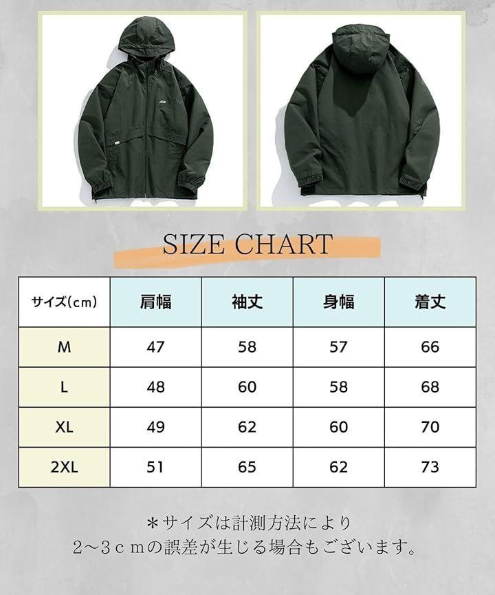 「素材」ポリエステル 「カラー」ブラック・ブラウン・グリーン・ライトグリーン「サイズ」M・L・XL・2XL「M」肩幅47/袖丈58/バスト57/丈66 「L」肩幅48/袖丈60/バスト58/丈68「XL」肩幅49/袖丈62バスト60/丈70「2XL」肩幅51/袖丈65/バスト62/丈73 *サイズは計測方法により2~3cmの誤差が生じる場合もございます。