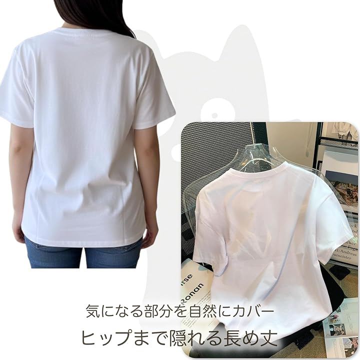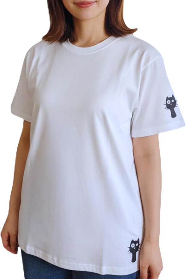 [ブブ オーハナ] Tシャツ ゆったり 大きめ 小さなネコちゃん シルエット デザイン プリント カジュアル 背面無地 レディース