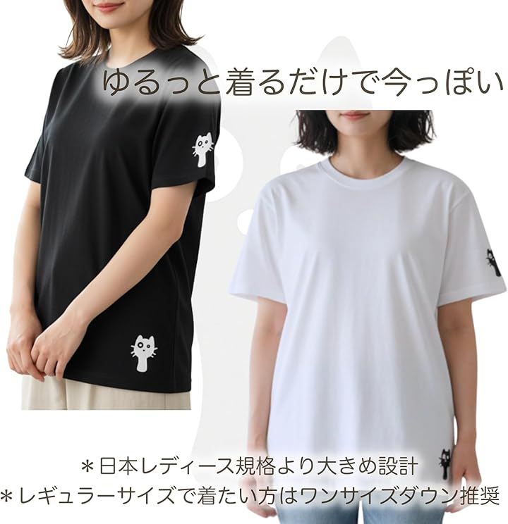 [ブブ オーハナ] Tシャツ ゆったり 大きめ 小さなネコちゃん シルエット デザイン プリント カジュアル 背面無地 レディース