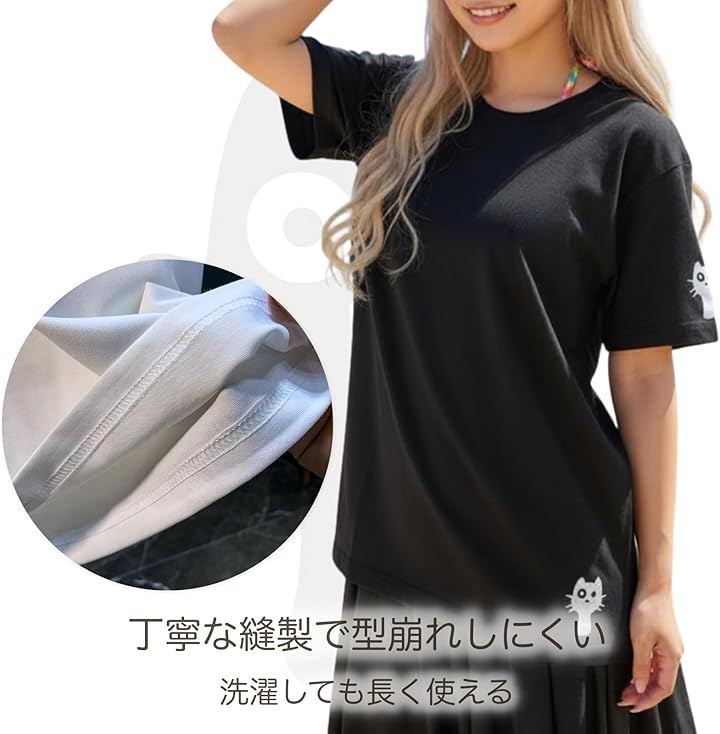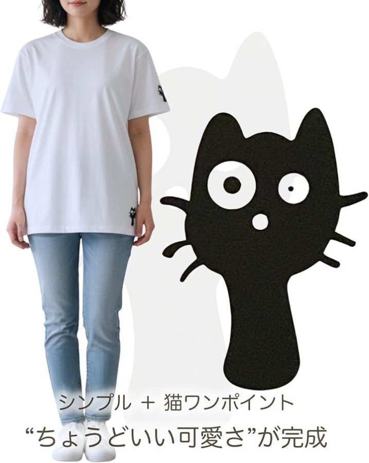 [ブブ オーハナ] Tシャツ ゆったり 大きめ 小さなネコちゃん シルエット デザイン プリント カジュアル 背面無地 レディース