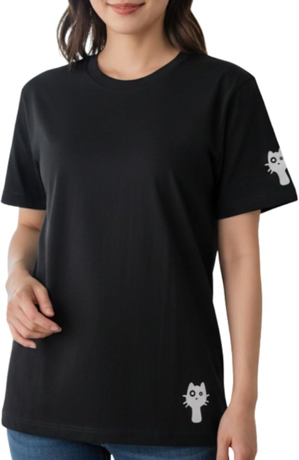 [ブブ オーハナ] Tシャツ ゆったり 大きめ 小さなネコちゃん シルエット デザイン プリント カジュアル 背面無地 レディース