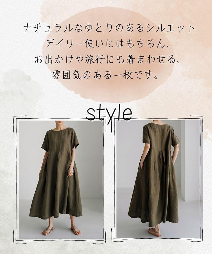 ゆったりとしたシルエットが可愛いナチュラルワンピース 胸下からの切り替えしは大きめタックでふんわりとしたロング丈で体型カバーも叶います 綿麻混合生地なので暑い時期もさらりと涼しく着られます