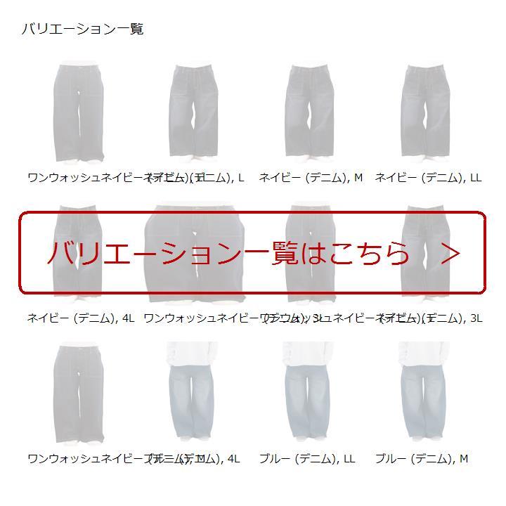・[Mサイズ]ウエスト:72cm、ヒップ巾:51.5cm、ワタリ巾:32cm、前股上:27cm、股下:70cm、裾巾:30cm [Lサイズ]ウエスト:76cm、ヒップ巾:53.5cm、ワタリ巾:33cm、前股上:28cm、股下:70cm、裾巾:31cm [LLサイズ]ウエスト:82cm、ヒップ巾:56.5cm、ワタリ巾:34.5cm、前股上:29.5cm、股下:70cm、裾巾:32.5cm [3Lサイズ]ウエスト:88cm、ヒップ巾:59.5cm、ワタリ巾:36cm、前股上:31cm、股下:70cm、裾巾:34cm [4Lサイズ]ウエスト:96cm、ヒップ巾:63.5cm、ワタリ巾:38cm、前股上:32.5cm、股下:70cm、裾巾:36cm