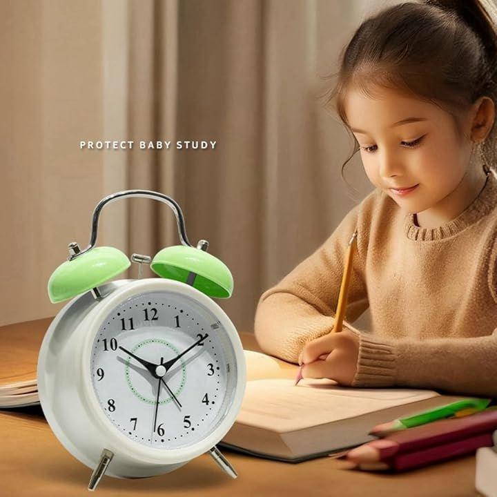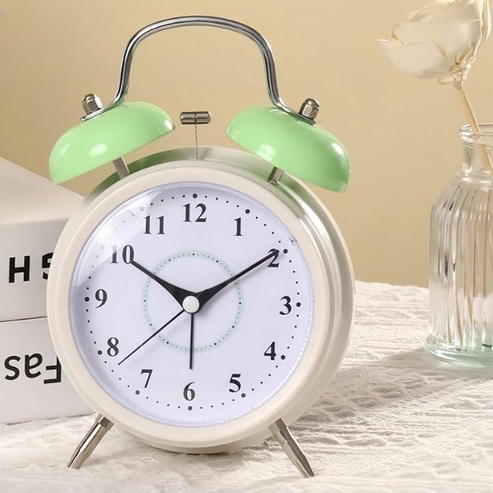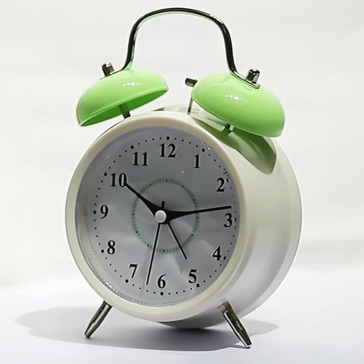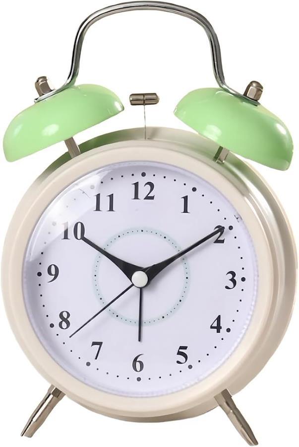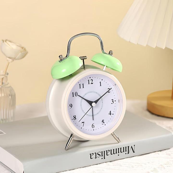 このアナログでおしゃれな目覚まし時計は、双鈴を持っているため、ハンマーが左右のベルを叩きます。
