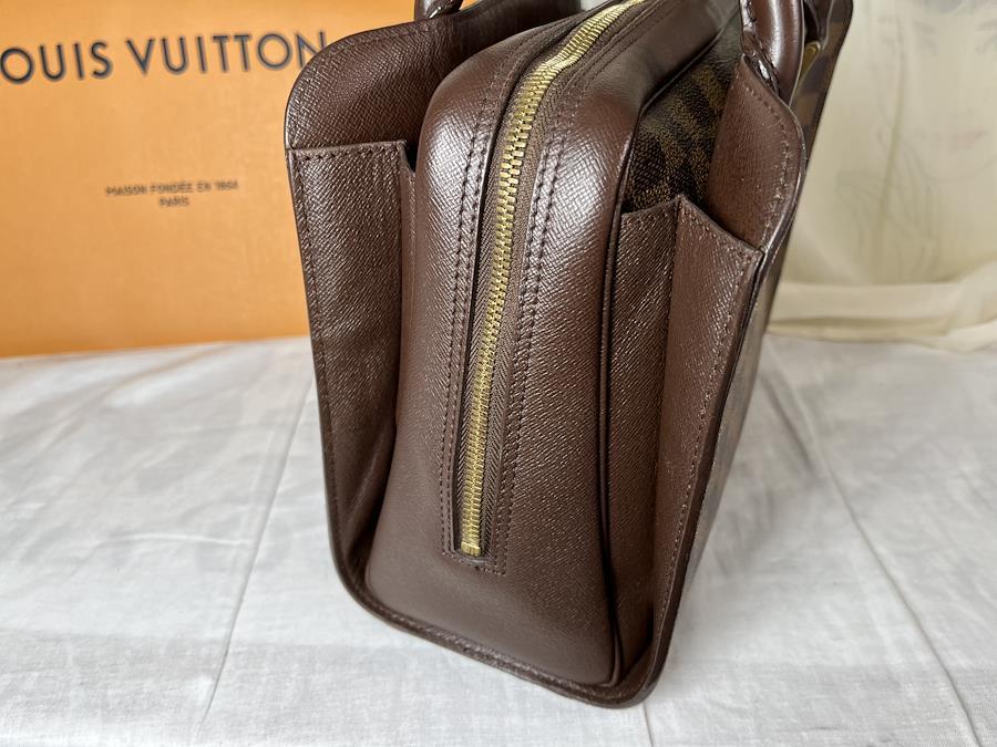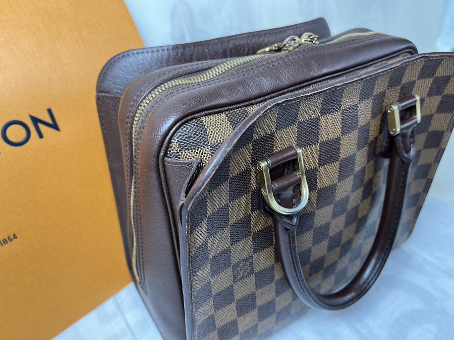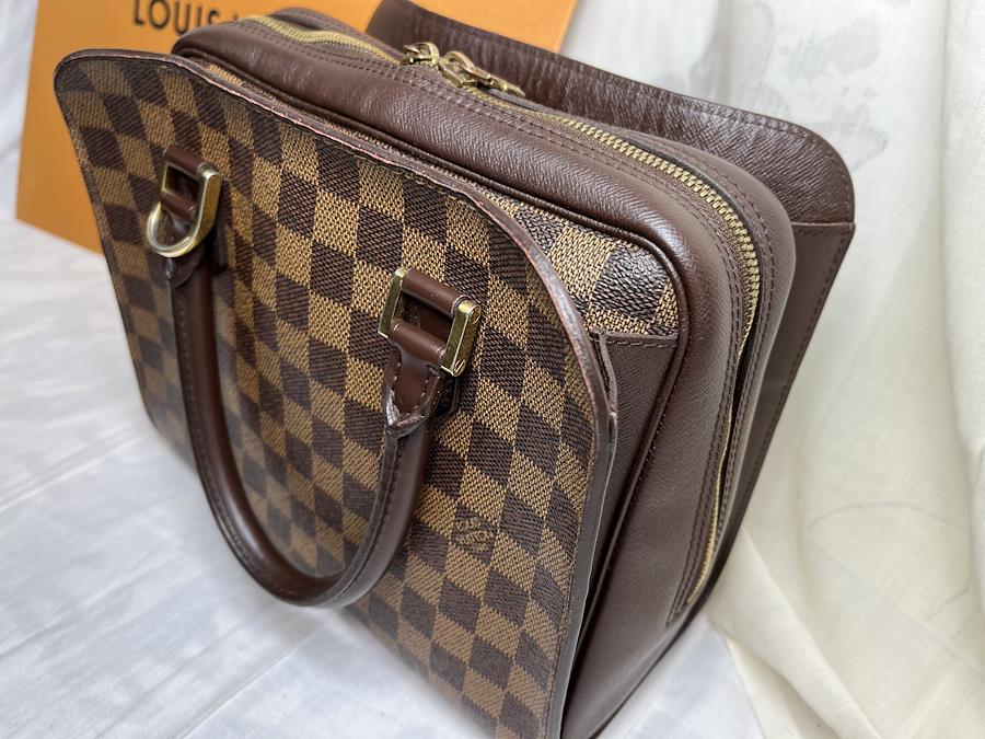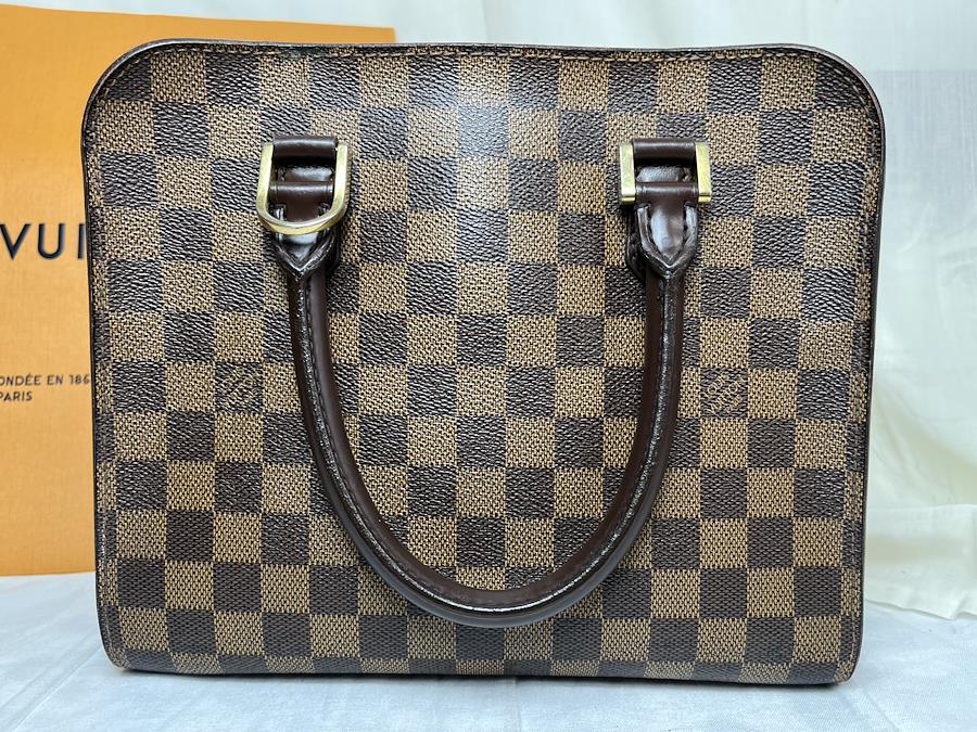 ダミエラインの中でも特に人気の高い「トリアナ」。コンパクトながらしっかりマチがあり、普段使いからビジネスシーンまで幅広く活躍する上品なハンドバッグです。四角いフォルムと堅牢さが特徴で、耐久性・収納力・エレガンスを兼ね備えた完成度の高いモデルです。