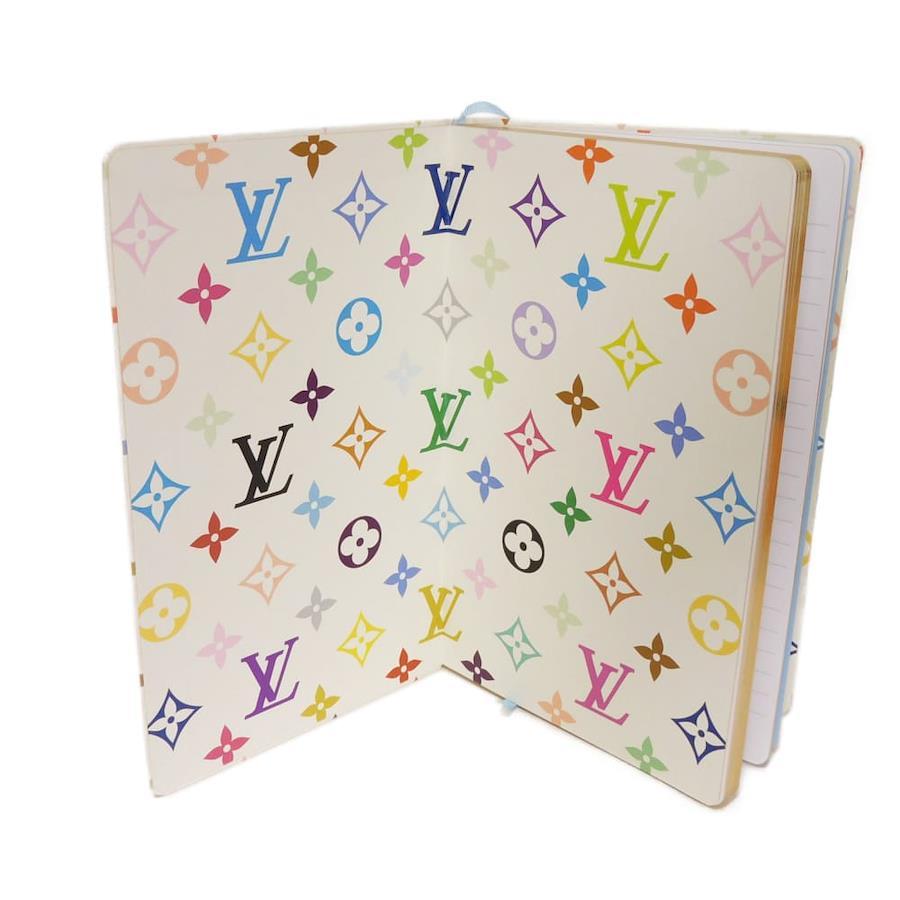 | ルイ・ヴィトンのモノグラムマルチカラーモチーフをプリントした「ノートブックカバーMM・エミリー」村上隆コレクション。 |