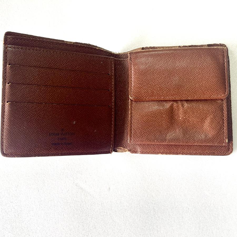 ☆こちらの商品はUSED品ですので新品や未使用品をお求めの方はご遠慮ください。ブラウンレザーのLouis Vuitton二つ折り財布、5つのカードスロットと1つの内部ポケット付き。