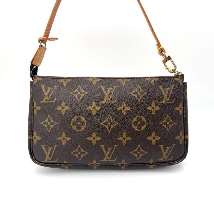 LOUIS VUITTON ルイヴィトン モノグラム ポシェット アクセソワール アクセサリーポーチ ハンドバッグ ブラウン PVC レザー レディース ユニセックス