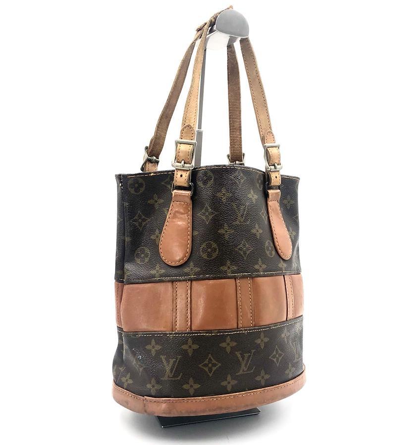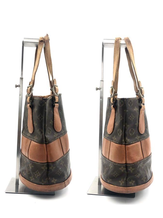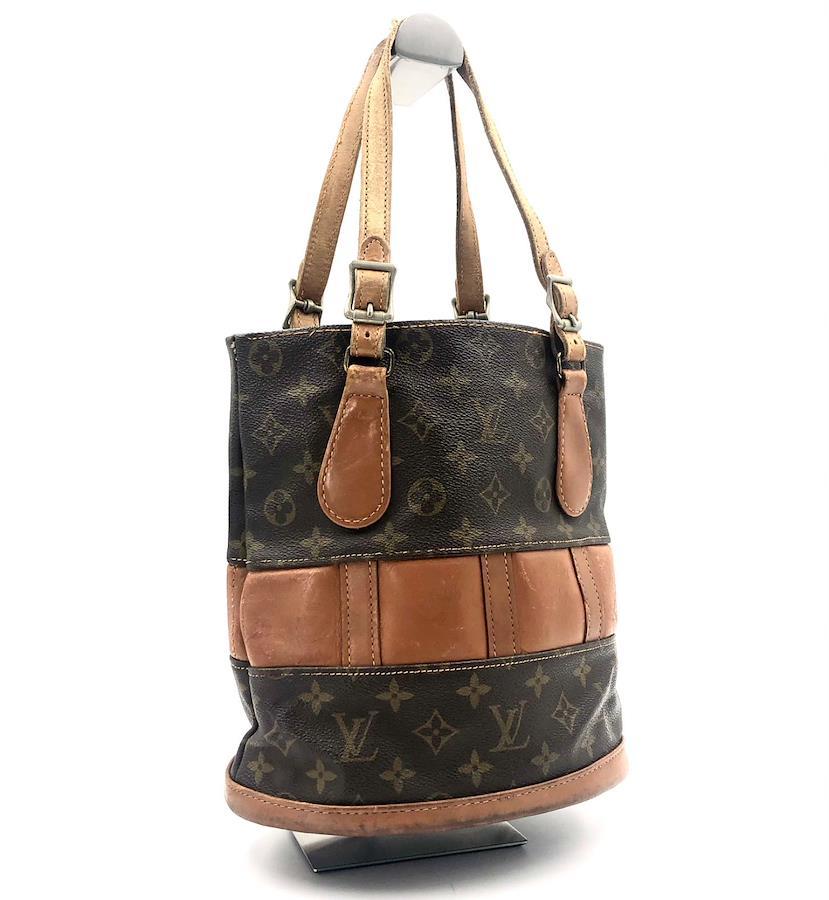 ■商品概要LOUIS VUITTON ルイヴィトンモノグラムUSAバケットPMトートバッグバケット型 バケツ型PVC×レザーブラウンUSA製紙タグあり底鋲ラグジュアリー 高級 ハイブランド