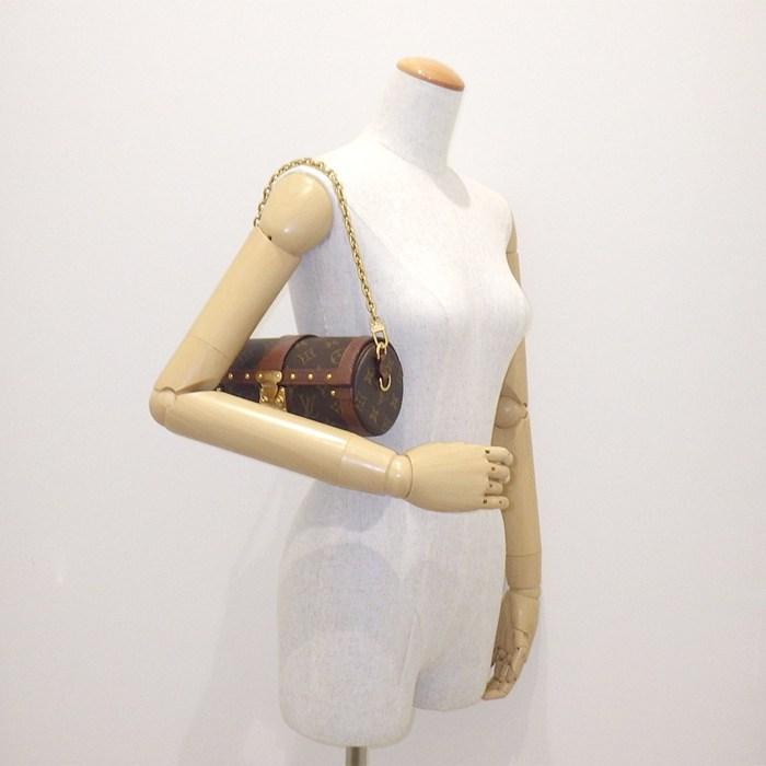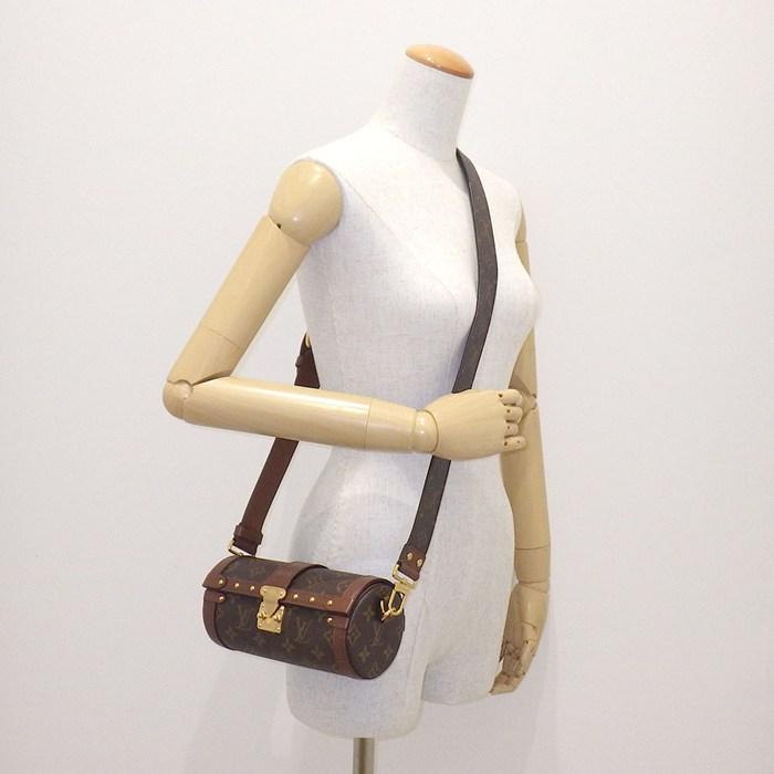 ■商品名パピヨン トランク M57835 PVCコーティング モノグラムキャンバス ブラウン カウハイドレザー ゴールド金具 【中古】