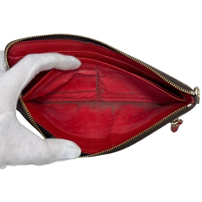 ☆---- 商品について ----☆ルイ ヴィトン 長財布 ポルトフォイユ コンプリス ec-24145 ブラウン レッド ダミエ エベヌ T&B N61740 財布 ダミエキャンバス 中古 VI0122 LOUIS VUITTON L字 茶色 ファスナー ヴィンテージ 赤 プリント メンズ レディース 定番 人気 ブランド 本物 鑑定済み