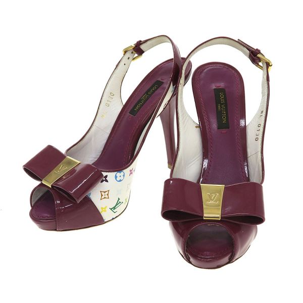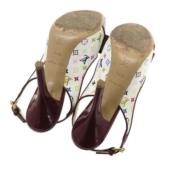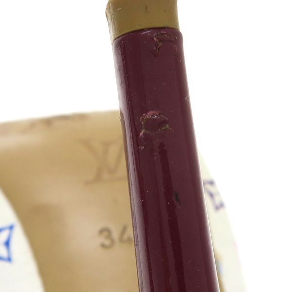 ■採寸#34 1/2 日本サイズ:約21.5cm 甲幅:約6.5cm ヒール高さ:約11.5cm■素材表記なし■コメントルイ・ヴィトンからサンダルが入荷しました。ボルドーのレザーにカラフルなモノグラムフラワーやLVロゴが散りばめられたお洒落でフェミニンな一品です。レザー部分のくすみ、金属部分のくすみ・小キズ、左つま先のキズ・スレ、外履き跡、左足インソール部分の汚れ、インソール部分のスレ・色褪せ、左ヒール部分にキズが見受けられる為Bランクでのご紹介です。キズが少し多めではございますが着用時にはそこまで目立たないかと思われます。足元に華やかさをプラスしてくれる商品です。※中古品の為、ヒールのゴムに劣化が出ている場合がございます。新しいゴムに替えて頂いてからのご試着をお勧め致します。