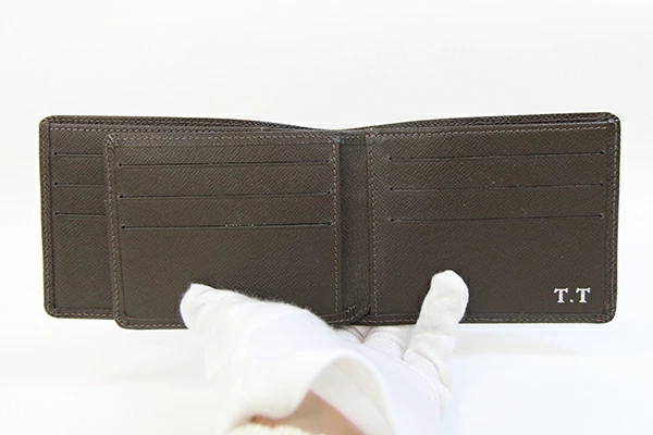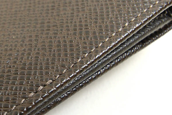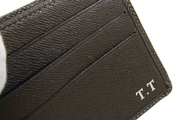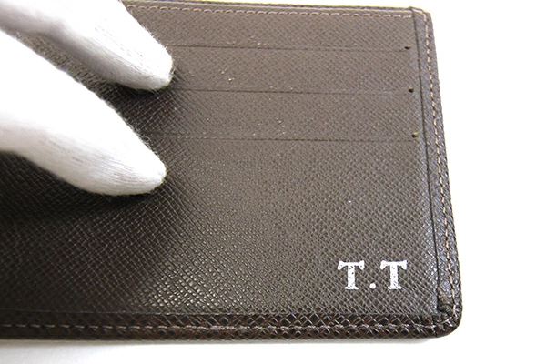 | 状態 | 外側:型崩れ・折リ合わせにズレあり。 スチや角に多少スレあり。 内側:カード跡・所々薄スレあり、カードポケット入口付近にスレ・色落ちいくつかあり。 金具:- ※「T.T」イニシャル刻印あり。 |