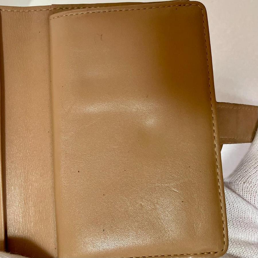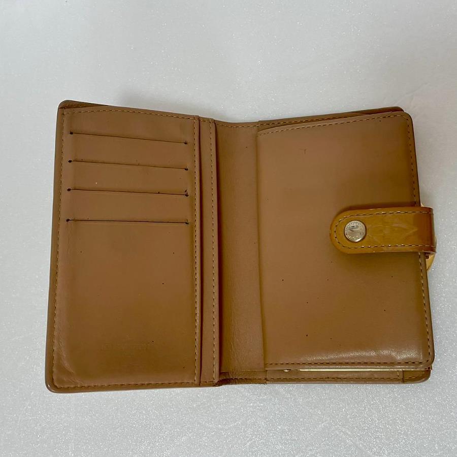 ☆こちらの商品はUSED品ですので新品や未使用品をお求めの方はご遠慮ください。ブラウンレザーの二つ折り財布、カードポケット4つとコインポケット付き。