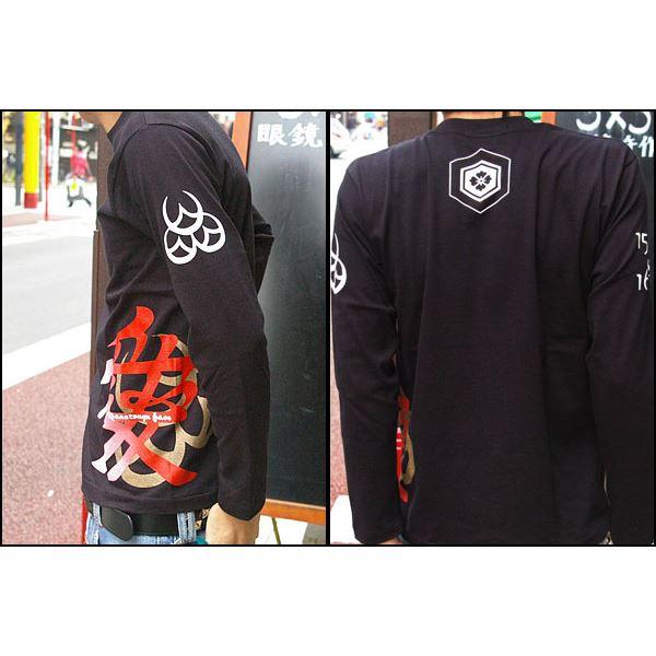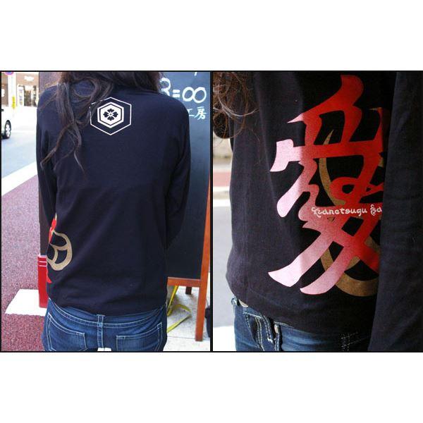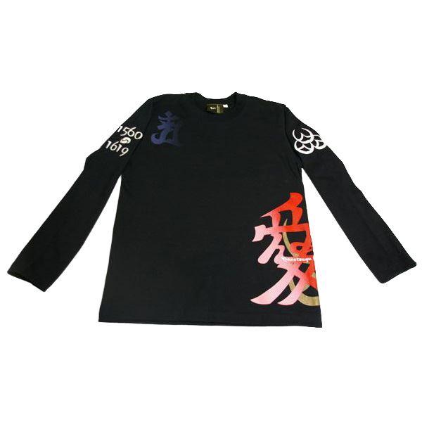 直江兼続・長袖【愛】のデザインコンセプトについて半袖のデザインをベースに直江兼続の象徴でもある【愛】の文字と三つ山を重ね大胆に配置。胸の上には兼続が長谷堂城攻略の際に着用したとされる兜の前立にあしらわれる梵字(ぼんじ)を配置。この梵字は普賢菩薩をあらわす梵字「アン」と考えられ「愛」の前立て兜とともに、兼続の信仰心の厚さを示している。背中には家紋、肩に三つ山・年代を配置。今回はグラデーションを各所に採用し、綺麗なイメージに仕上げるのと、これぞ兼続だという思いをデザインしました。是非あなたのTシャツコレクションに加えてみてください。