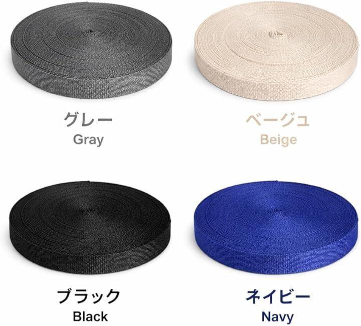 「ハンドメイドバッグの持ち手用テープ」 摩擦や引っ張りに強いポリエステル素材の手芸用アクリルテープです。