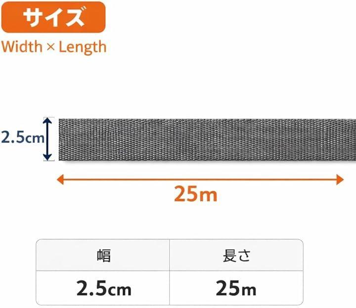 ・紐の長さ:25m ・幅:2.5cn ・厚み:1.5mm