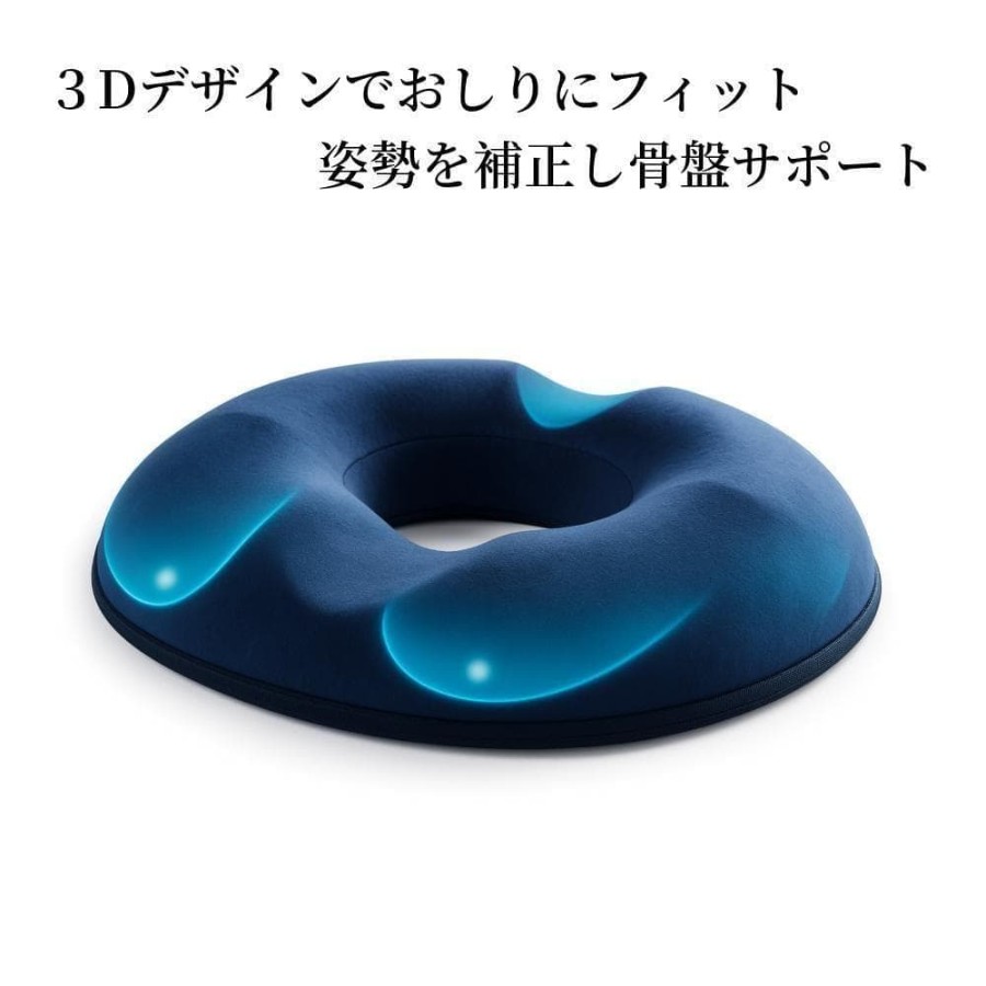 長く座っても快適に使える、3Dドーナツ設計の低反発クッションです。