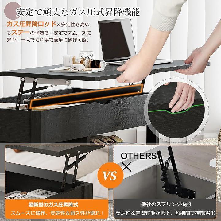 「高い耐荷重と安心の頑丈設計」天板の昇降にはガスシリンダーを採用し、操作時にバタンバタンせずスーッとスムーズな感触で昇降することが可能です。