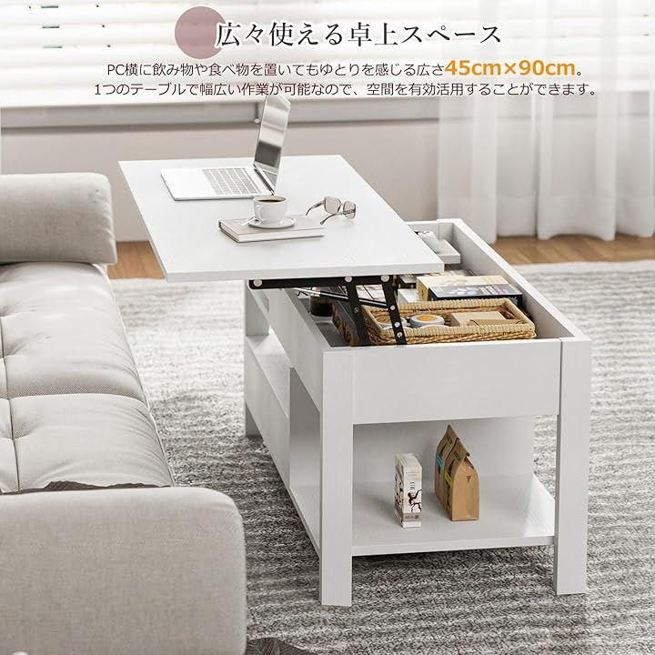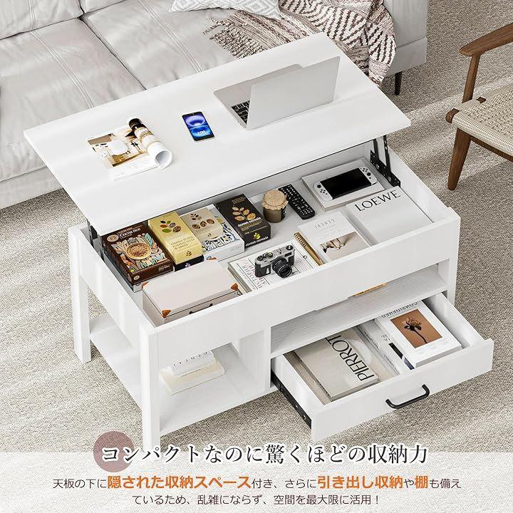 天板下は隠し収納スベースとなっており、仕切りがなく、雜誌などの幅や厚みが大きい物も収納に最適。