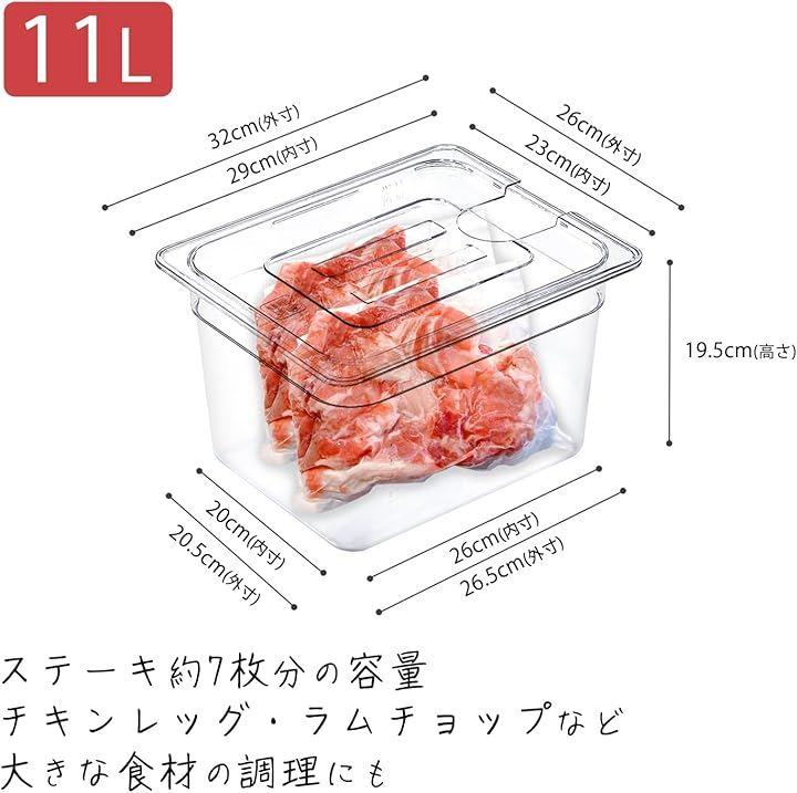 真空調理器に対応し、食材や水量を一目で確認可能。