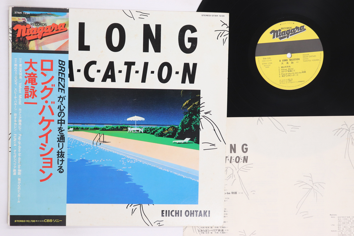 ・アーティスト大滝詠一・タイトルロング・バケイション・レーベル・型番NIAGARA 27AH1234・フォーマットLPレコード・コンディション(盤)良い (VG+)・コンディション(ジャケット)可 (VG)・コンディション(帯)可 (VG)・特記事項【ライナー付き】 【カバーに目立つ染み】【オビに目立つ染み】
