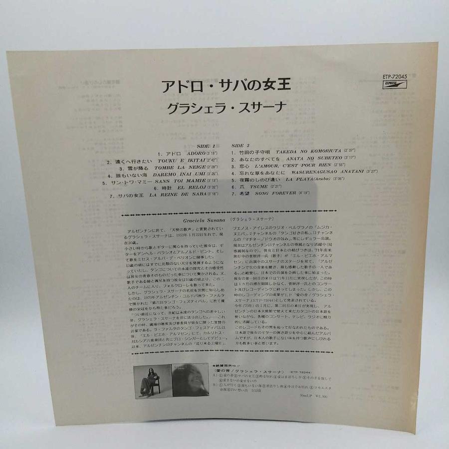 [タイプ] LP グラシェラ・スサーナ「アドロ・サバの女王 Adoro La Reine de Saba (ETP-72045・フォーク・シャンソン・タンゴ)[状態] 古いものになるため、ジャケットなどに汚れ・ダメージがみられる場合があります。