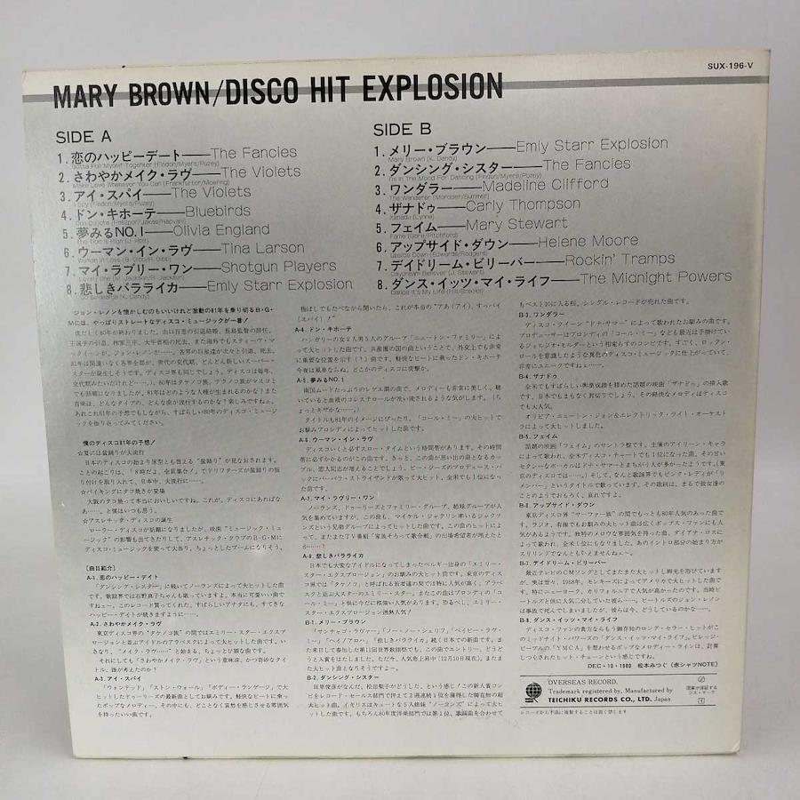 [タイプ] LP MARY BROWN/DISCO HIT EXPLOSION/TEICHIKU SUX196V[状態] 古いものになるため、ジャケットなどに汚れ・ダメージがみられる場合があります。