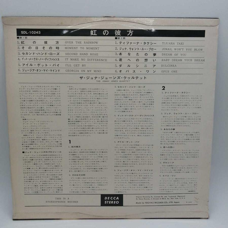 [タイプ] LP 虹の彼方 OVER THE RAINBOW THE JONAH JONES QUARTET ザ・ジョナ・ジョーンズ・クヮルテット レコード[状態] 古いものになるため、ジャケットなどに汚れ・ダメージがみられる場合があります。