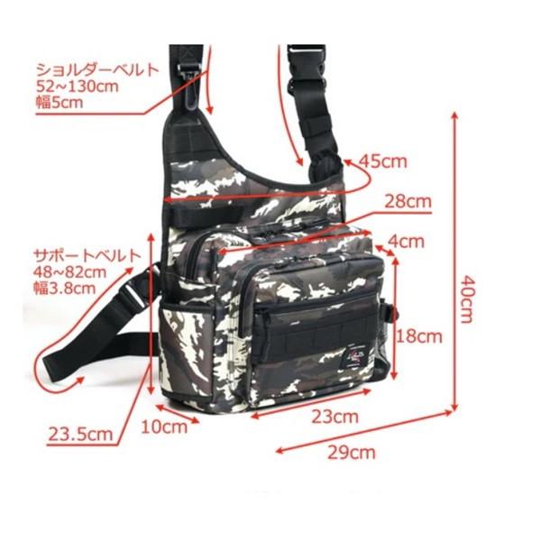 バスやシーバス、管理釣り場など様々なオカッパリに対応するワンショルダー。2005年に発売したワンショットサイドをブラッシュアップしたモデル。 外寸(縦×横×高さ):H40cm x W45cm x D14cm 素材:420D ナイロン PVC ※実物と色が違って見える場合があります。あらかじめご了承下さい。