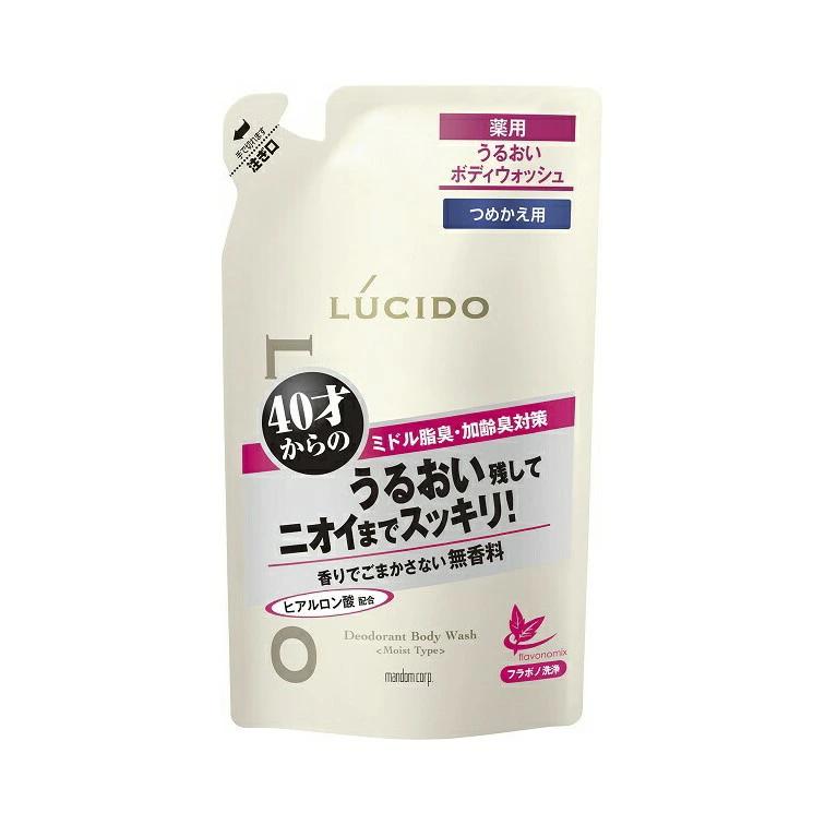 【ルシード 薬用デオドラントボディウォッシュ うるおいタイプ つめかえ用の商品詳細】●香りでごまかさない 40才からのニオイケア。●ニオイのない清潔感あるうるおい肌に導くフラボノ洗浄。●「汗臭」・「加齢臭」だけでなく、「ミドル脂臭」まで集中ケアするボディソープ。●洗浄・防臭・肌ケア、3つの効果でニオイのない清潔肌へ導く。うるおいタイプ。●高い洗浄力でニオイの元となる汗やベタつく皮脂までしっかり落とす。●殺菌成分がニオイ菌を殺菌し、ニオイの発生を防ぐ。●ヒアルロン酸(保湿成分)配合。●抗炎症成分配合。●ノンメントールでスースーしない。●植物フラボノミックス(カンゾウ抽出末、桂皮エキス)・緑茶エキス配合(保湿)。●無香料・無着色。●販売名:薬用Mデオドラント ボディウォッシュB