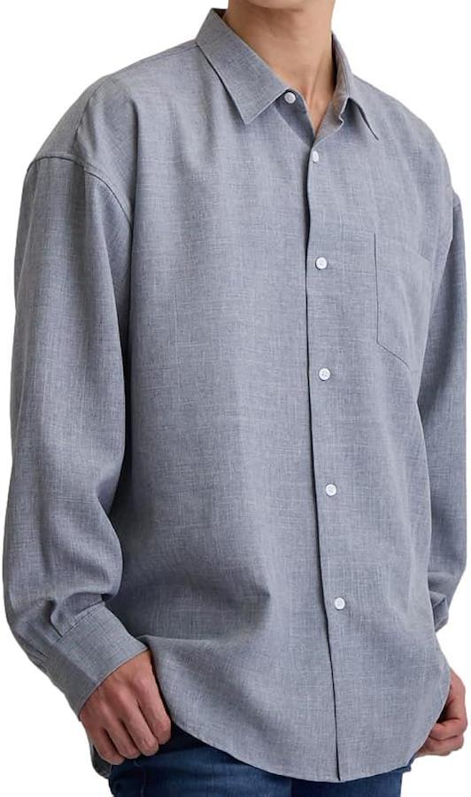 「リラックス感あふれるメンズカジュアルシャツ」メンズファッションのトレンド、ビッグシルエットの長袖シャツです。