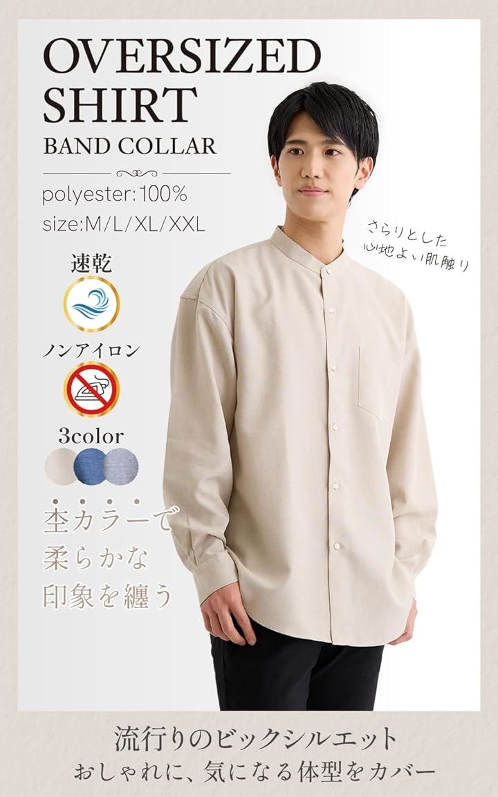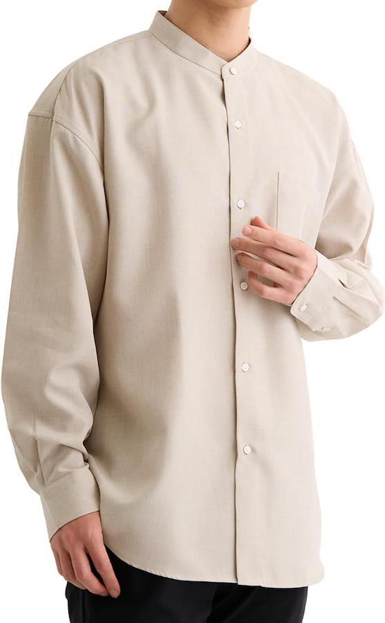 バンドカラーのカジュアルシャツとしても、ビジネスカジュアルにも。