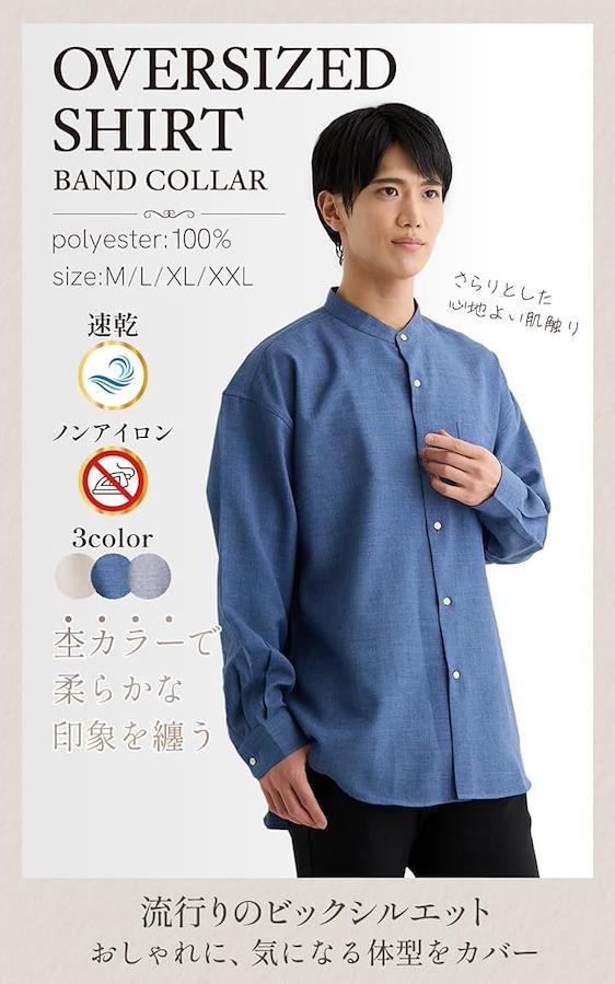 バンドカラーのカジュアルシャツとしても、ビジネスカジュアルにも。