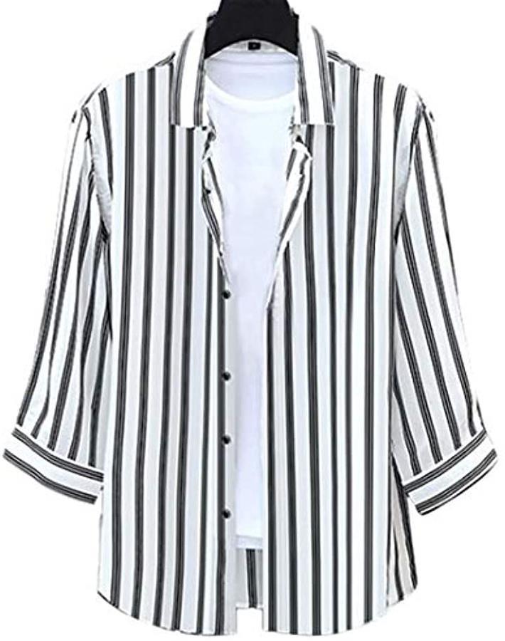 Lucky Charm Men's XXL 3/4 Sleeve Lightweight Striped Casual Shirt, Abrasion Resistant, Moisture-Wicking, and Breathable
