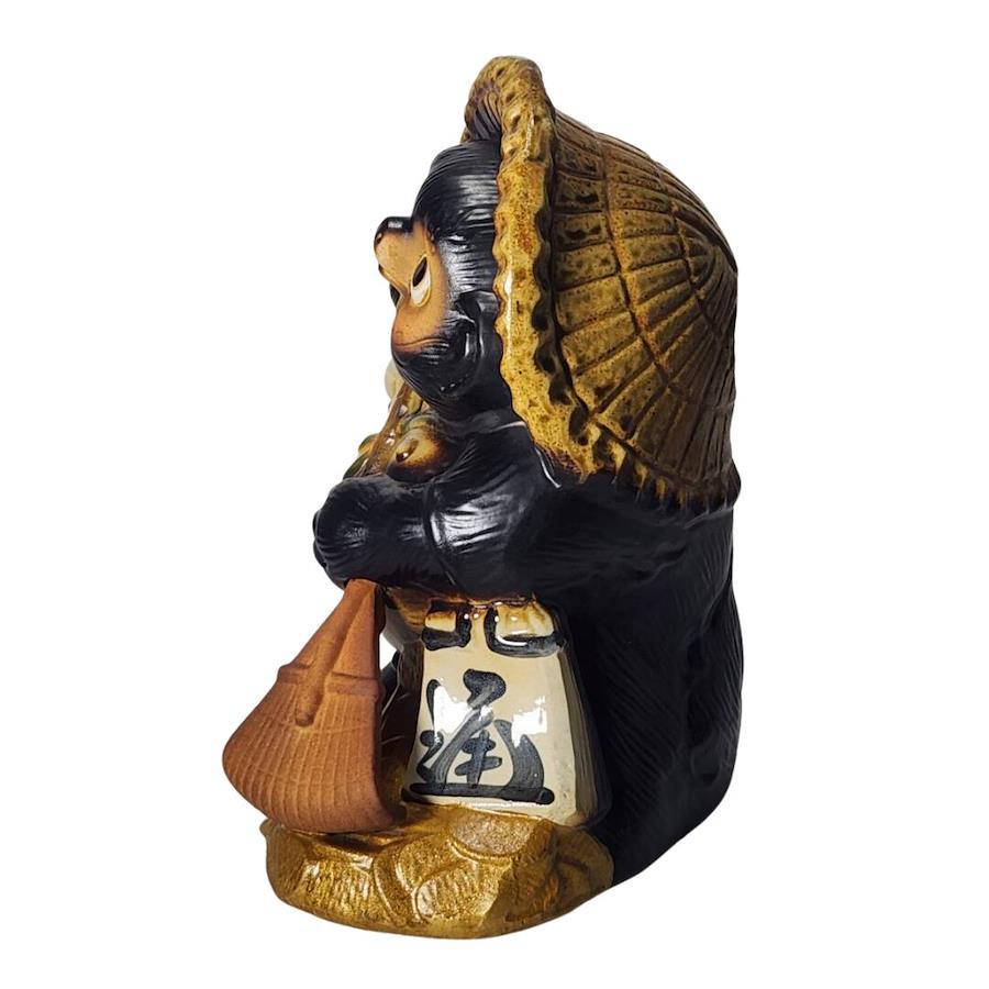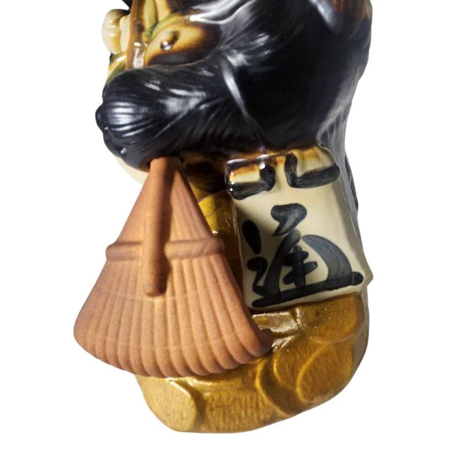 この置物は、インテリアのアクセントとしてだけでなく、家庭や店舗でも縁起物としての役割を果たし、幸福をもたらす存在となります。信楽焼特有の柔らかな質感が、どんな場所にも自然に溶け込み、心地よい空間を演出します。
