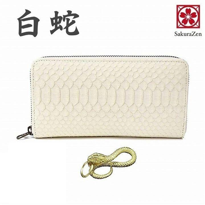「蛇革 金運財布で運気をUP。」本革白蛇財布です。