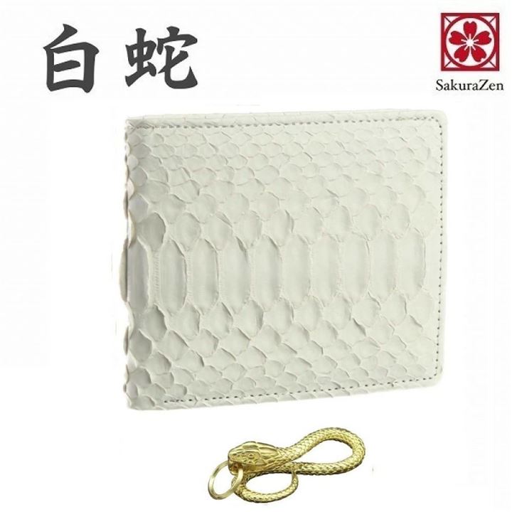 「蛇革 金運財布で運気をUP。」本革白蛇財布です。