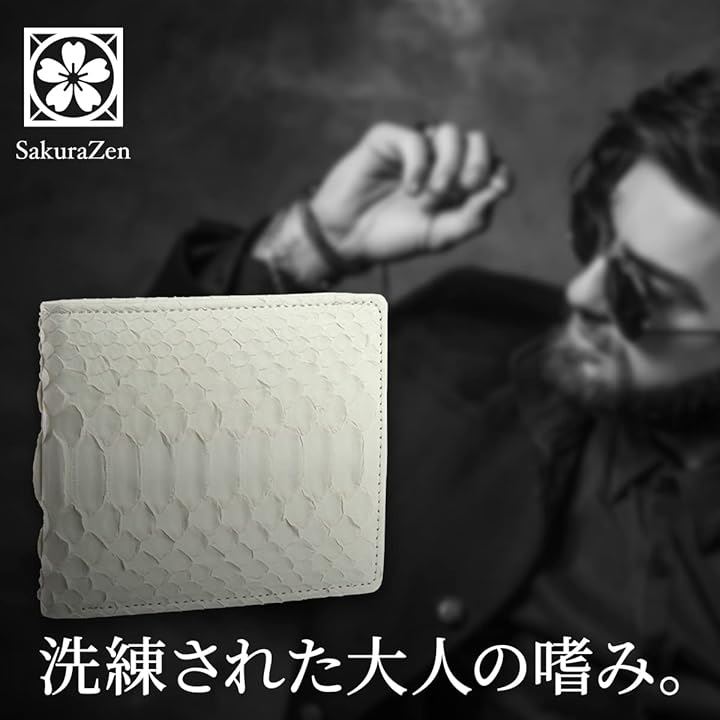 「本物の蛇革を使用」こちらの商品は、外面に本物のパイソン レザーを使用した蛇革財布です。