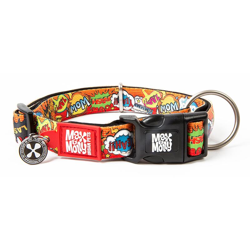 外国の映画や漫画に登場するヒーローの吹き出しをデザインした柄の犬用首輪です。もし迷子になってしまっても、スマートIDが迷子札代わりになるので安心!