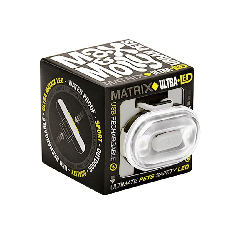 夜間の散歩には欠かせないライト。飼い主だけではなく一緒に歩いている犬の安全を守るために、明かりで自分たちの存在を示すことはとても重要です。マックスモーリー社の「マトリックスLED」はコンパクトでありながら