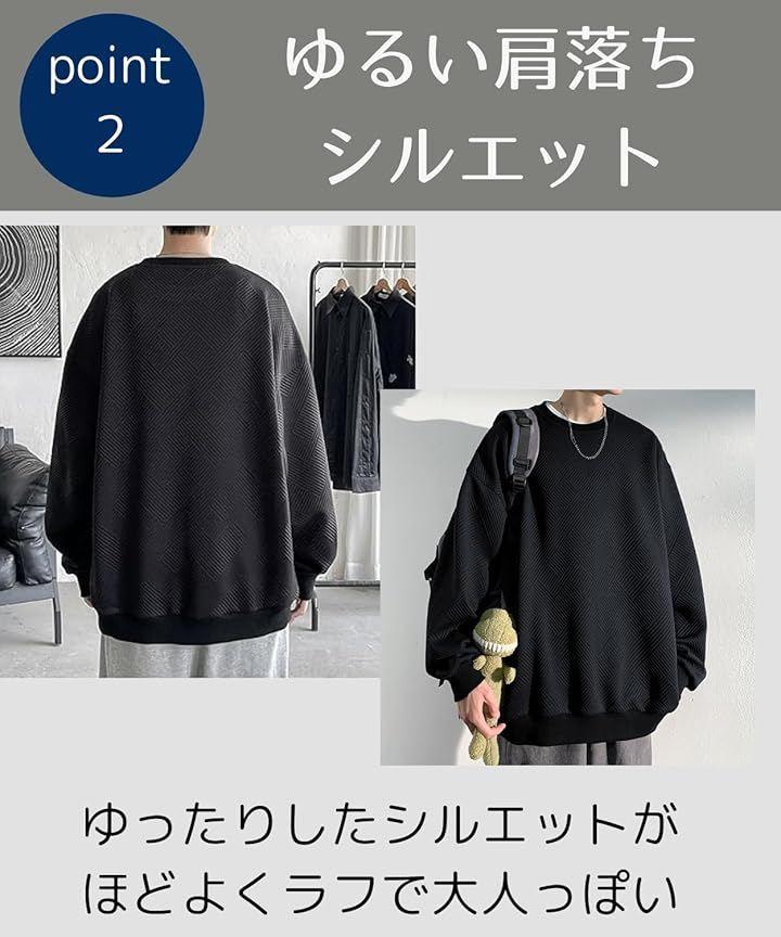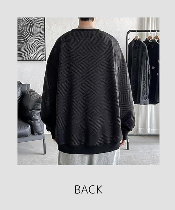 「商品説明」:お洒落で快適なこのメンズトレーナーは、長袖で大きいサイズ。