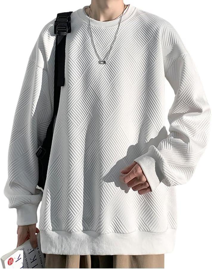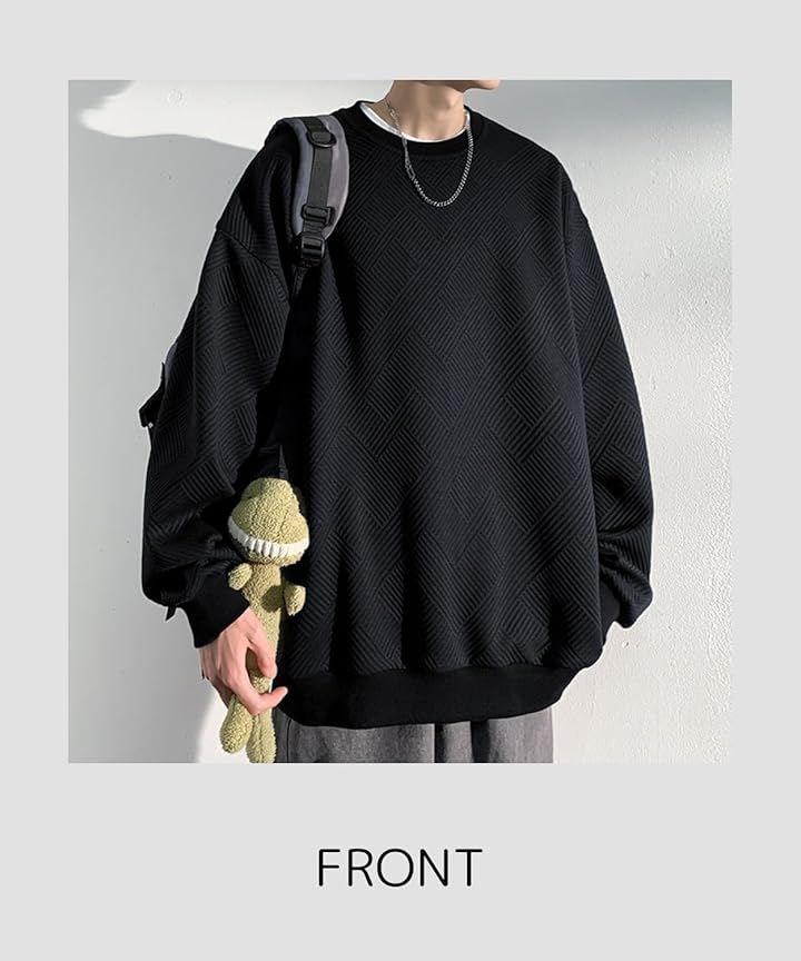 「商品説明」:お洒落で快適なこのメンズトレーナーは、長袖で大きいサイズ。