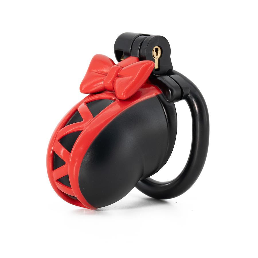 Luoyoupin男性用貞操具, ブラック&レッド, 蝶結びデザイン, 工芸品質, ロック付き