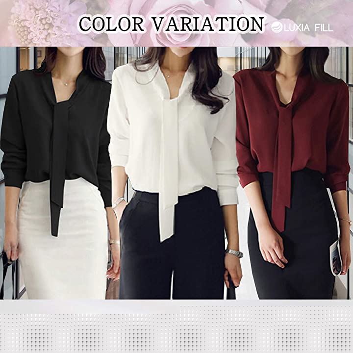 ・上品なデザインと滑らかな肌触りの生地が気持ち良いボウタイブラウスです。